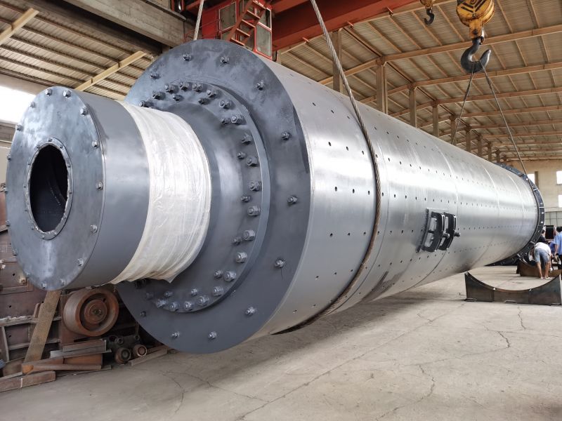 本機為臥式筒形旋轉裝置,外沿齒輪傳動,兩倉,格子型球磨機。物料由進料裝置經入料中空軸螺旋均勻地進入磨機一倉,該倉內有階梯襯板或波紋襯板,內裝不同規格鋼球,筒體轉動產生離心力將鋼球帶到一定高度后落下,對物料產生重擊和研磨作用。物料在一倉達到粗磨后,經單層隔倉板進入二倉,該倉內鑲有平襯板,內有鋼球,將物料進一步研磨。粉狀物通過卸料箅板排出,完成粉磨作業。